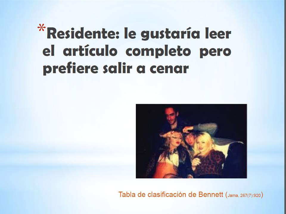 La clasificación del Dr. Bennett para ubicarnos en las diferentes etapas de nuestra vida profesional y la importancia que le damos a la lectura de los artículos científicos.